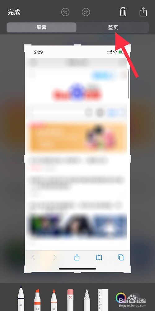 2、打开想要截长图网页,按手机上截图键后再点击“整页”;