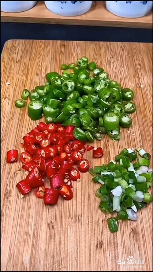 线椒 小米椒 葱花切末备用 大蒜也切末;