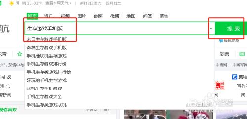 点击电脑界面,进入搜索键,搜索输入生存游戏手机版。
