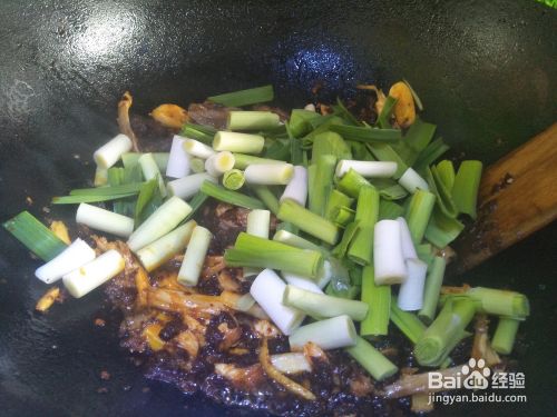 最后加入蒜苗,炒至蒜苗稍变软关火。