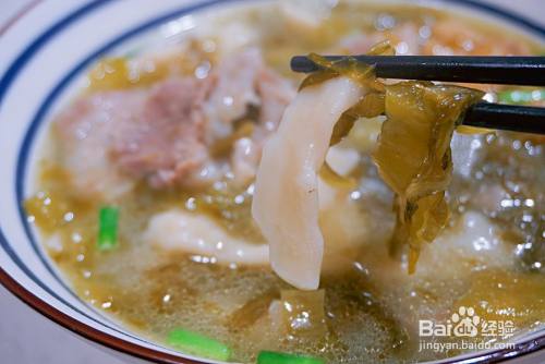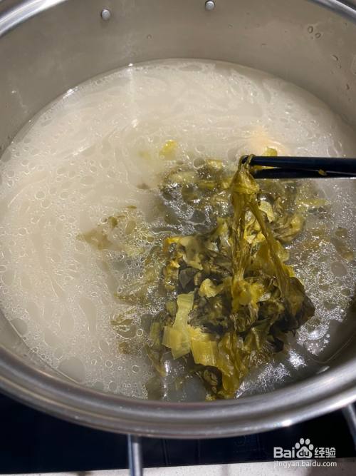 另外起一口锅倒入一些高汤、再加入切好的酸菜丝