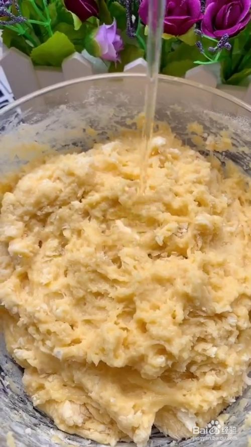 我们将鸡蛋打散,然后加入酵母粉,白糖,搅拌均匀后再加入高筋面粉,搅拌成湿润的面团状,再加入适量植物油