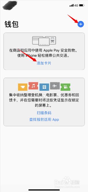 进入钱包,点击右上角的“+”,或者第一个框下方的“添加卡片”