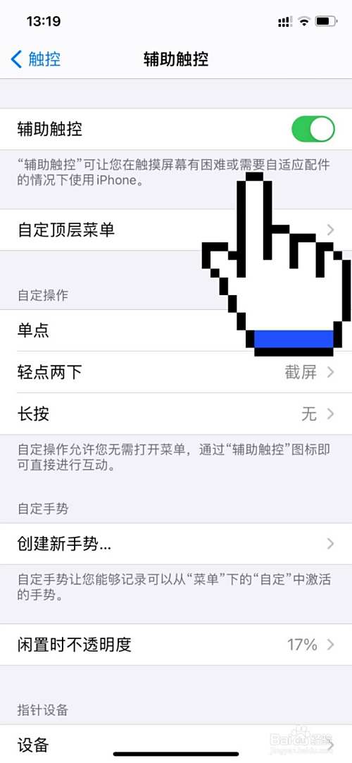 苹果13小圆点可以在辅助功能里点击触控功能,选择打开辅助触控即可开启,具体操作步骤如下: