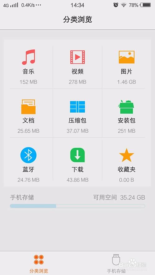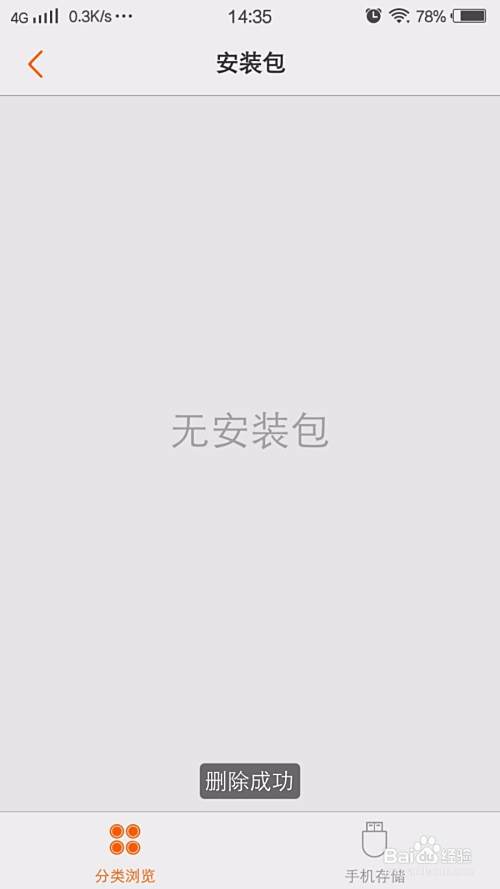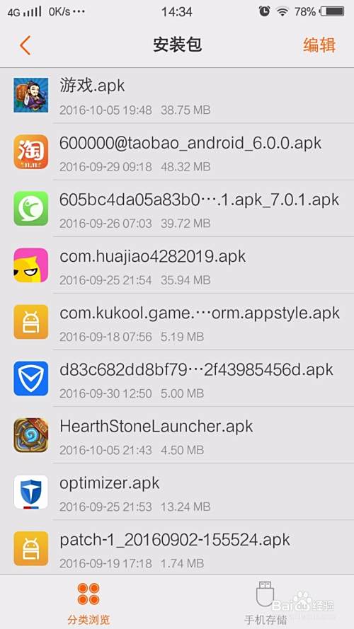 安装包在“分类浏览”模式下,“手机储存”中时找不到的