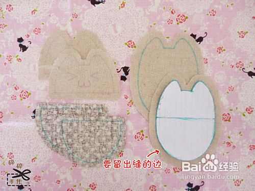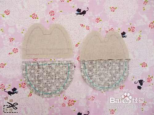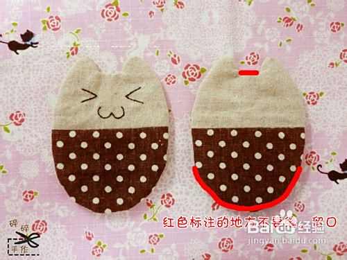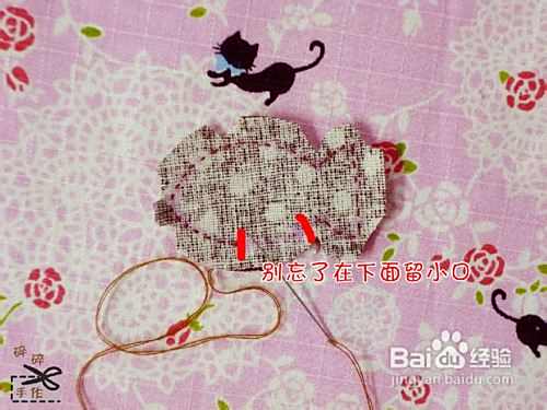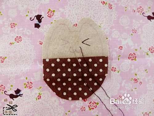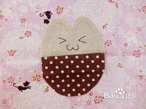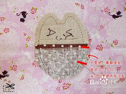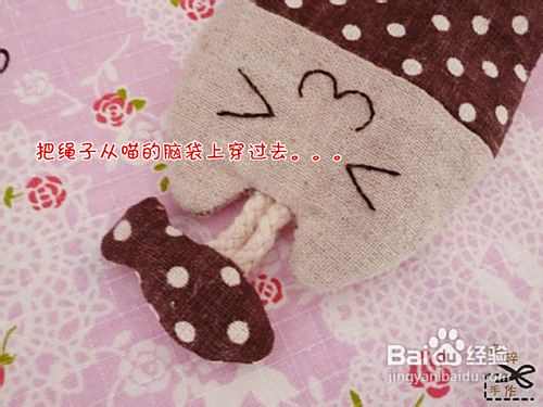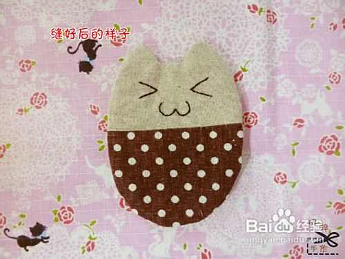 用水消笔(或者气消笔)画好猫脸,按照笔画的位置绣出来