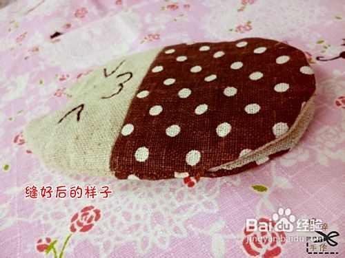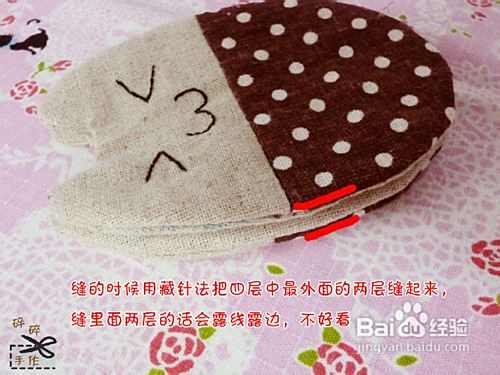 把刚才缝好的表布和一开始剪好的里布 反面向外按照笔画的位置缝起来