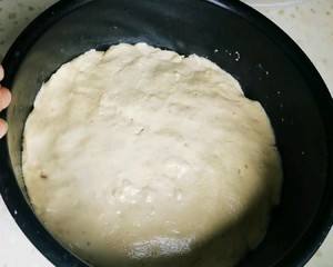 整形:装6寸模。 由于面团特别黏,团不成团,煳不成煳。所以用刮刀或手沾水,把不成形的面团按平。按着按着,表面也就平滑了。