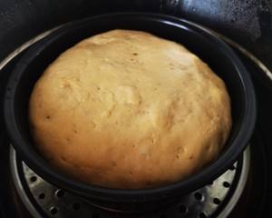 发酵:20℃左右的天气,发酵了两个小时,都快要满了(一个半小时的时候才发了一半,力量都在最后半小时) 冷水上锅,大火蒸30分钟。不用焖,直接拿出来脱模就好了。