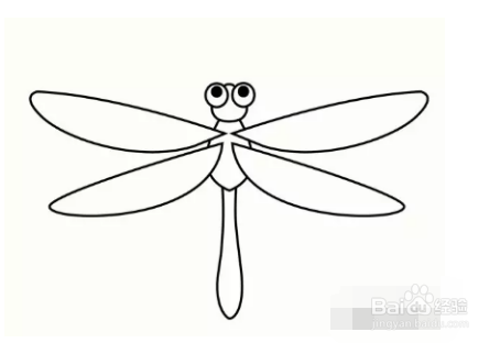 画出蜻蜓的头和两只大眼睛。