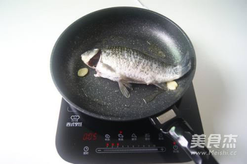 5将鲫鱼煎至两面金黄,淋入1汤匙米酒。