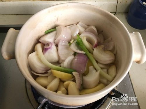 砂锅中加入适量油,放入洋葱、葱姜蒜爆香