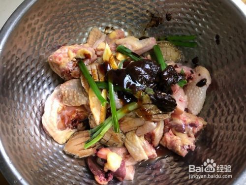 把鸡肉和鲍鱼放入盆中,加入米酒、盐、生抽、蚝油、淀粉、葱姜拌匀腌制半天