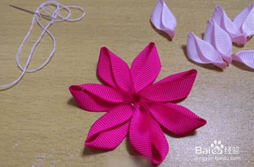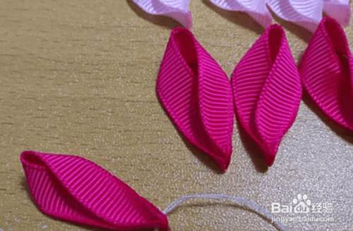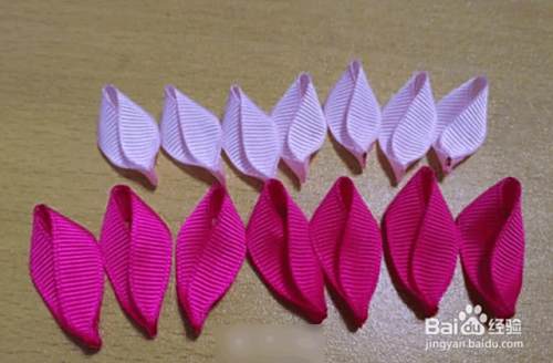 其他切好的缎带也同样处理,每个颜色的花瓣有7个。