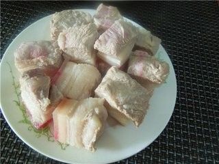 锅中加入清水水烧开后倒入五花肉煮五分钟后盛出。
