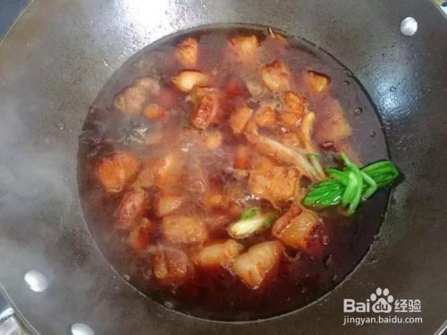 加入清水,以刚没过五花肉为最佳。倒入料酒、老抽大火炖至七成熟时加入食盐改小火收汁。