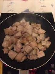 待冰糖炒至黄褐色时倒入五花肉继续翻炒,翻炒速度要快啊,否则会糊的。