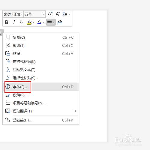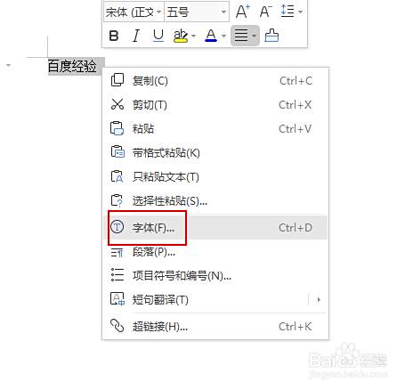 再有右击鼠标,在弹出的菜单列表中单击【字体】选项。