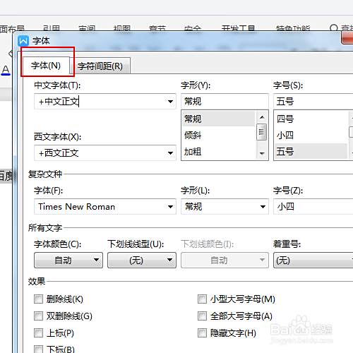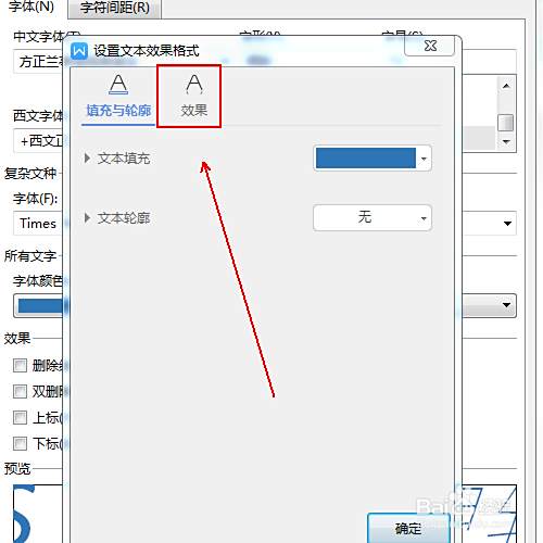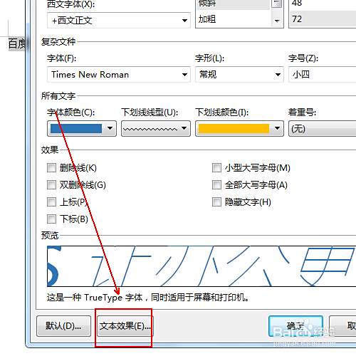 在【字体】窗口的字体选项卡中单击下方的【文本效果】选项。