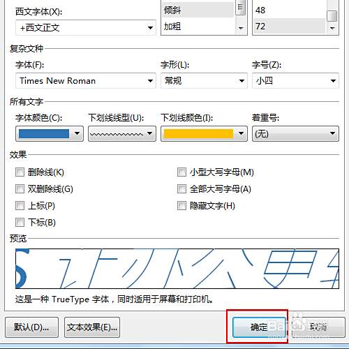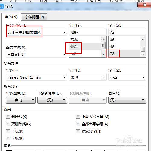 在【字体】选项卡中设置中文字体、字形和字号等选项。