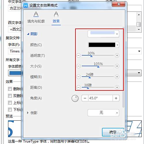 在【阴影】中设置如图所示的参数并单击下方的【确定】按钮即可。