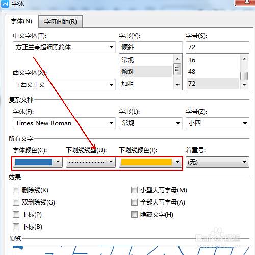 在下方的所有文字中设置字体颜色、下划线线型和下划线颜色等参数。