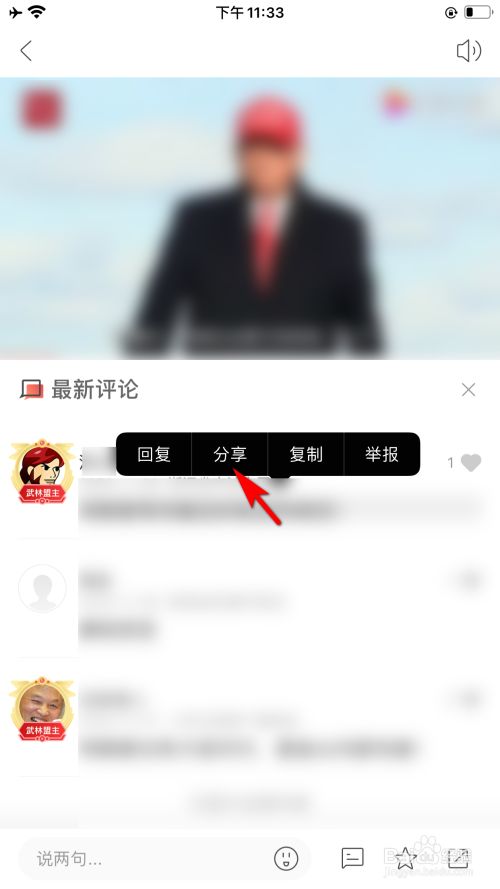 选择下方任意渠道,即可将他人对视频的评论内容分享给好友。