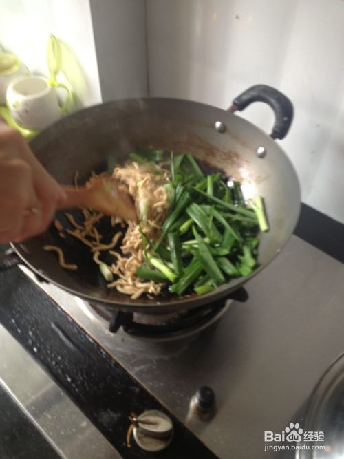 放入大蒜菜和豆腐丝一起翻炒