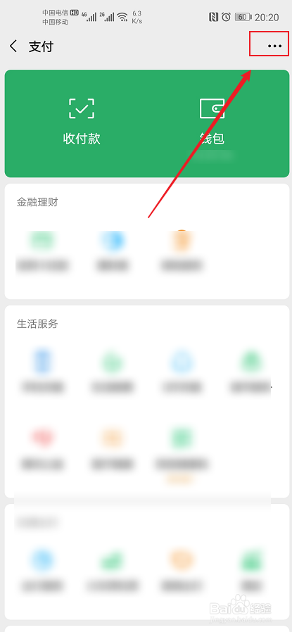 在支付功能内钱包上方,点击“…”进入支付管理界面。