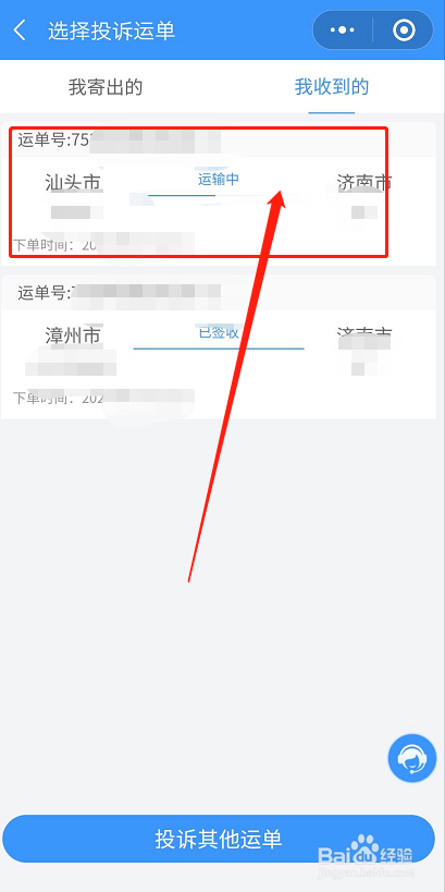 点击我寄出的或者我收到的,找到你要投诉的订单。