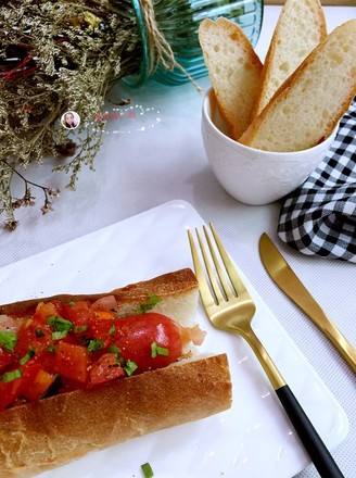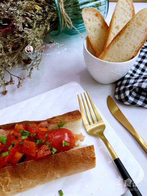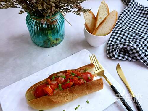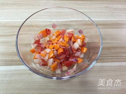 3先制作萨尔萨辣酱材泛眠,把洋葱和番茄切成丁和盐,橄榄油
