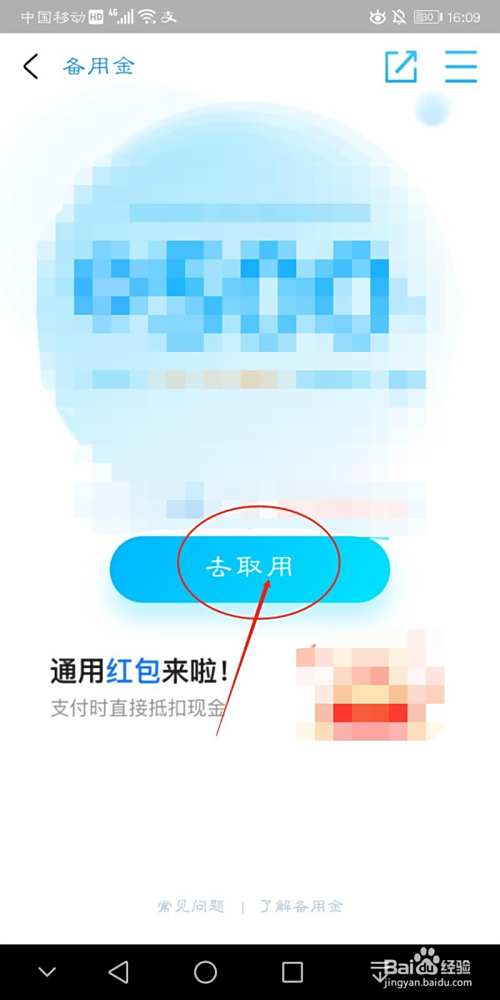 点击“确认去用”即可,备用金就会即时转入账户余额。