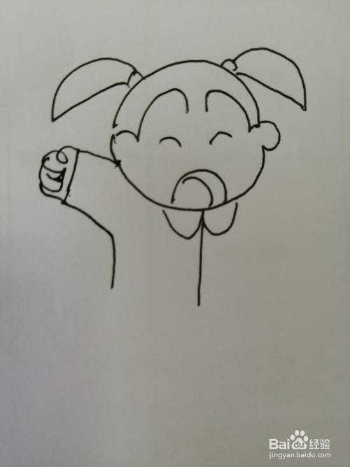 第五步,然后把可爱的小女孩的右边的手臂也画出来,画法比较简单。