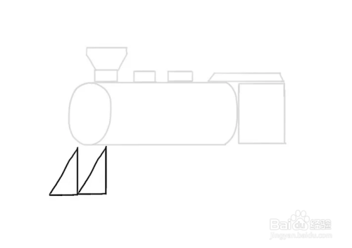 在蒸汽机下面画两个三角形,供火车前部使用。