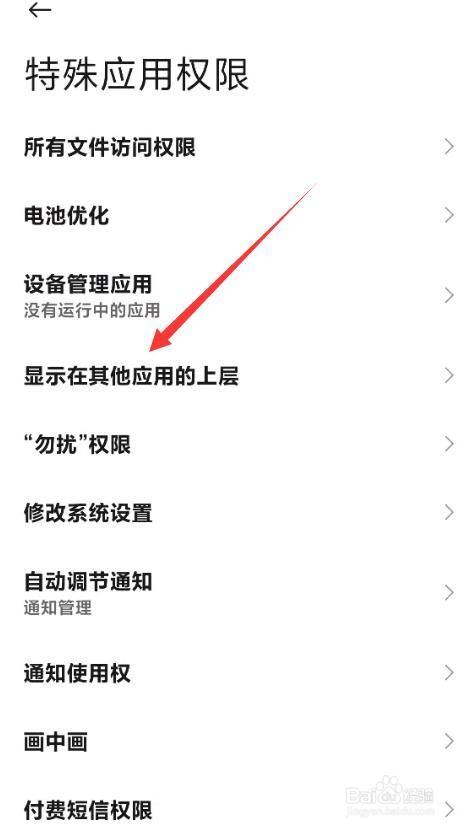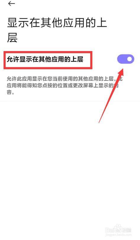 点击允许显示在其他应用的上层后方的按钮,将其关闭后。即可关闭软件的开屏广告