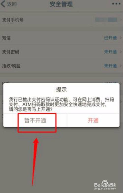 系统会提示开通消费密码,点击暂不开通,如下图所示