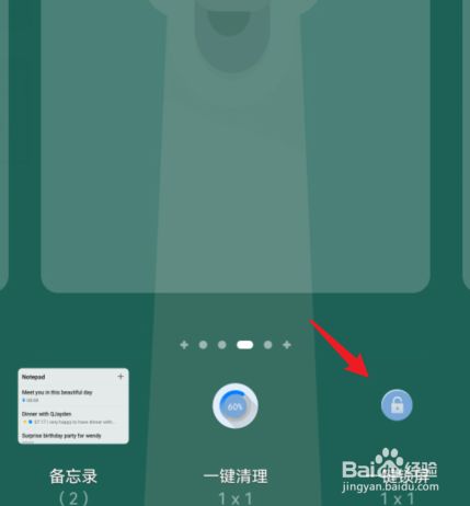 在华为手机的窗口小工具内选择一键锁屏后,即可将一键锁屏调出来。以下为详细步骤说明: