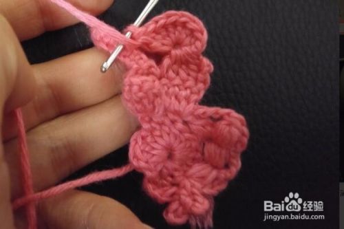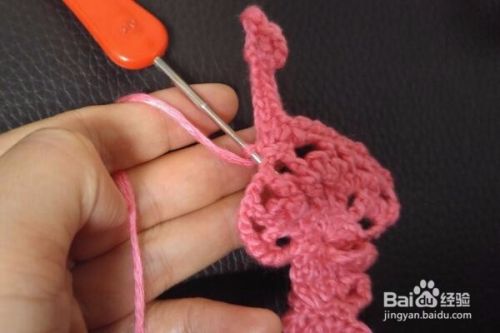 翻过来进行钩织,先立1个辫子针,在立的针目里钩织1个短针,再拉2个辫子针,在上一行2辫子针形成的洞洞里钩织1个短针,再拉2个辫子针,再在下一个长长针上钩织1个短针,再拉2个辫子针,再在2辫子针形成的洞洞里钩织1个短针,再拉2个辫子针,下面的都是这样的钩织方法,钩织到底4个长长针的短针的时候,再拉2个辫子针,再在2辫子针形成的洞洞里钩织1个短针,再拉11个辫子针,返回在倒数第4针的里山钩织1个长针,再拉3个辫子针,返回在第一针作引拔针连接,再拉3个辫子针,在下一个里山钩织1个短针,再顺次钩织4个短针,1个中长针,1个长针,然后再在下一个长长针上钩织1个短针,再拉11个辫子针,返回在倒数第4针的里山钩织1个长针,再拉3个辫子针,返回在第一针作引拔针连接,再拉3个辫子针,在下一个里山钩织1个短针,再顺次钩织4个短针,1个中长针,1个长针,然后再在2辫子针形成的洞洞里钩织1个短针,再拉2个辫子针,再在下一个长长针上钩织1个短针,再拉2个辫子针,再继续在2辫子针形成的洞洞里钩织1个短针,再拉2个辫子针,在下一个长长针上钩织1个短针,按照这样的方法将余下的针数钩织完成,抽线断线,将线头藏好就完成了。