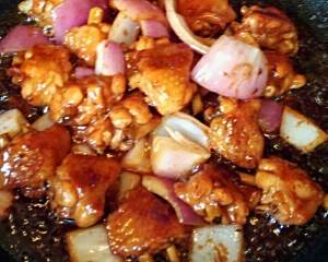 放入洋葱块。翻炒洋葱断生即可装盘。