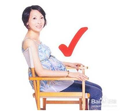 当由站姿改为坐姿时,孕妈要先用手在大腿或扶手上支撑一下,再慢慢地坐下。如果是坐椅子,要深深地正正地坐在椅子上,后背笔直地靠在椅背上,两腿骨关节和膝关节要呈直角,大腿呈水平状态。可以先慢慢坐在靠边部位,然后再向后移动,直至坐稳为止。但不可以坐在椅子的边上,否则容易滑落,如果不是稳当的椅子还有跌倒的危险。