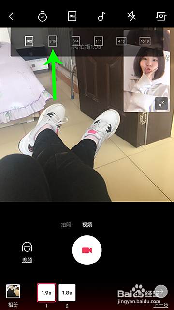 进入到拍摄界面,点击“原始”,打开后选择要调整的比例,选择后,视频比例就更改了。
