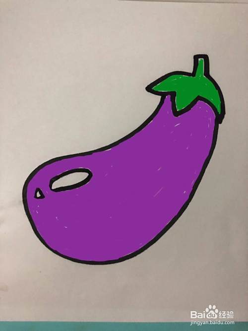 最后给叶子涂上绿色,茄子身子涂上紫色,就完成啦。