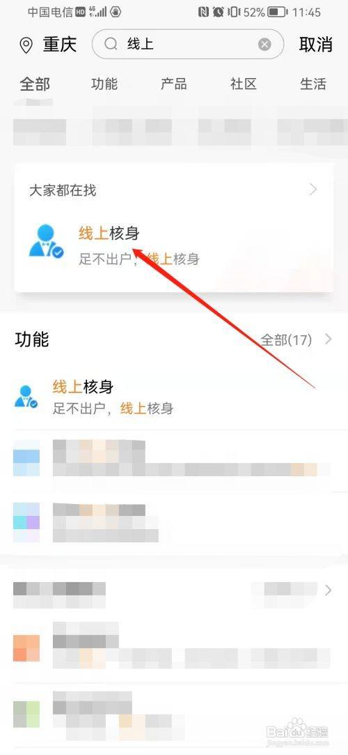 在主页最上方搜索框中搜索线上核身,点击进入。