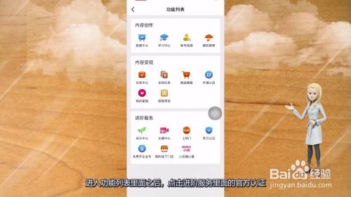 进入功能列表里面之后,点击进阶服务里面的官方认证。