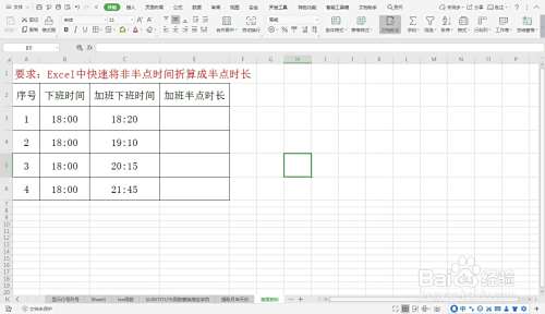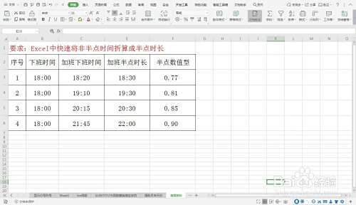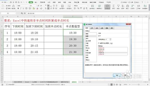 5:Excel中快速将非半点时间折算成半点时长完成。