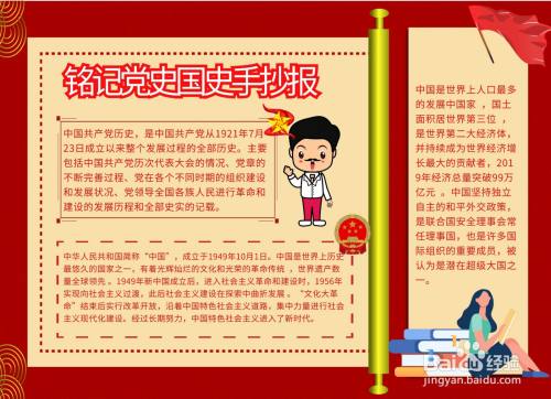 在爱国主义教育中,党史国史的教育非常重要,今天就来教大家制作一份铭记党史国史的手抄报,让人们了解这方面的知识。