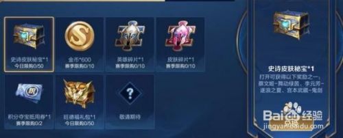 目前,王者荣耀兑换界面所提供的奖励一共有六种,分别是史诗皮肤秘宝、金币600、英雄碎片、皮肤碎片、积分夺宝抵用券以及旺得福礼包,其中金币600、英雄碎片和皮肤碎片每一个赛季限购10个,积分夺宝抵用券每赛季限购2个,两个宝箱每天限购50个。