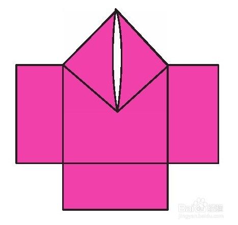 按图示撑开,并沿虚线向箭头方向折,打开三个小口袋。