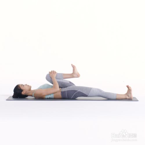 呼气双手将右膝拉向胸腔方向