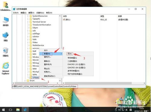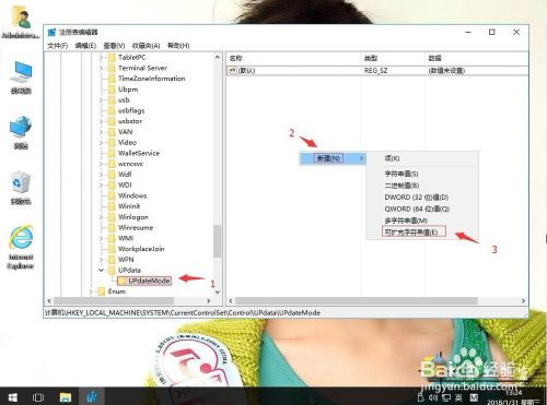 重命名为UpdateMode。在右侧空白处。右键,新建-可扩充字符串值。
